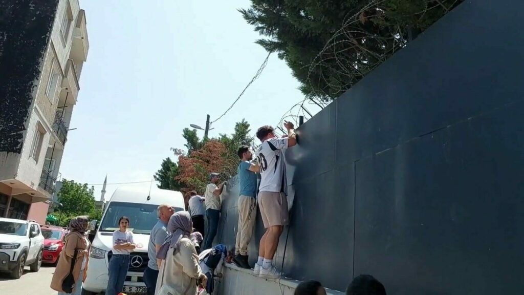Sınavın başlamasıyla okulun kapılanı kapanırken, bazı velilerin duvarın üzerine çıkıp tellerin arasından bakmaya çalışması bu kadarına da pes dedirtti.