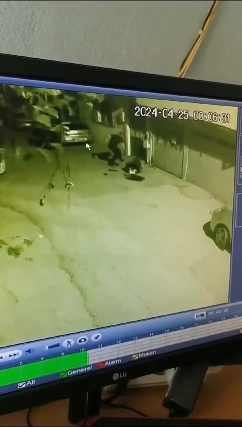 BURSA’DA YANINDAKİ KADINLAR KONUŞURKEN NEYE SİNİRLENDİĞİ BİLİNMEYEN ADAM, YOL ÜZERİNDE DURAN PLASTİK ÇÖP KONTEYNERİNE TEKMELER YAĞDIRDI. AYAĞI KOVADA TAKILI KALAN KİŞİNİN O ANLARI SANİYE SANİYE GÜVENLİK KAMERALARINA YANSIDI.