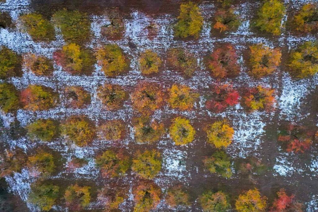 Uludağ eteklerindeki meyve ağaçları sonbaharın gelmesiyle renk cümbüşüne dönüştü. Önceki gün aniden bastıran kar yağışı sonrası beyaz örtüyü üzerine giyen doğa, sonbahar renkleriyle karışınca ortaya kartpostallık görüntüler çıktı. Bu muhteşem görüntüler fotoğraf sanatçısı Şaban Kılıçcı tarafından görüntüledi.