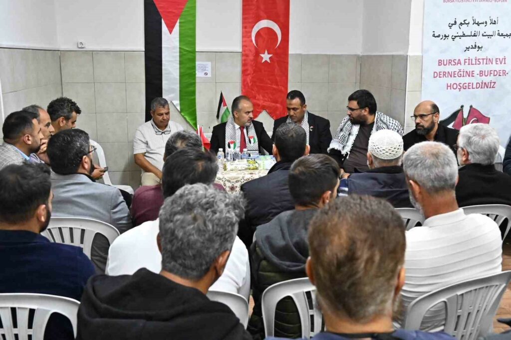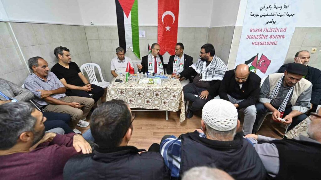 Sivil katliamının durdurulması yönünde dünyadan yükselen çağrılara rağmen İsrail güçleri, günlerdir ayrım yapmadan Gazze’yi bombalamaya devam ediyor. Bebek, çocuk, kadın demeden dünyanın gözü önünde tarihin en büyük katliamlarından birini yapan İsrail, 5 binden fazla insanı öldürürken, 15 binden fazla insanın da yaralanmasına sebep oldu. Amerika ve Avrupa’nın desteğini alarak soykırım suçu işleyen İsrail, hastane, konut, cami, kilise, pazar yeri ayırt etmeksizin Gazze’ye bomba yağdırmaya devam ediyor. Dünya genelinde vatandaşlar nezdinde tepkiler çığ gibi büyürken, kan ve gözyaşı ile yoğrulan topraklardan binlerce kilometre uzaktaki Bursa’daki Filistin Evi Derneği’nde de bölgedeki gelişmeler an be an takip ediliyor. Bursa Büyükşehir Belediye Başkanı Alinur Aktaş da Filistin Evi Derneği’ni ziyaret ederek yakınları şehit edilen Filistinlilere taziyede bulundu. Türk ve Filistin bayraklarıyla donatılan dernek binasında, şehitler için dualar okundu.