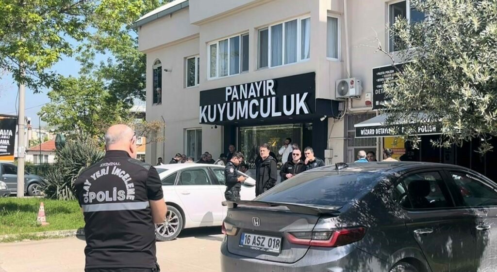 Bursa’da iki şüpheli soygun yapmak için girdiği kuyumcuya ateş açtı. Şans eseri para makinasına isabet kurşun nedeniyle kuyumcu yara almazken, panikleyen şahıslar olay yerinden hızla kaçtı. Şahıslar kuyumcudan bişey alamadı.
