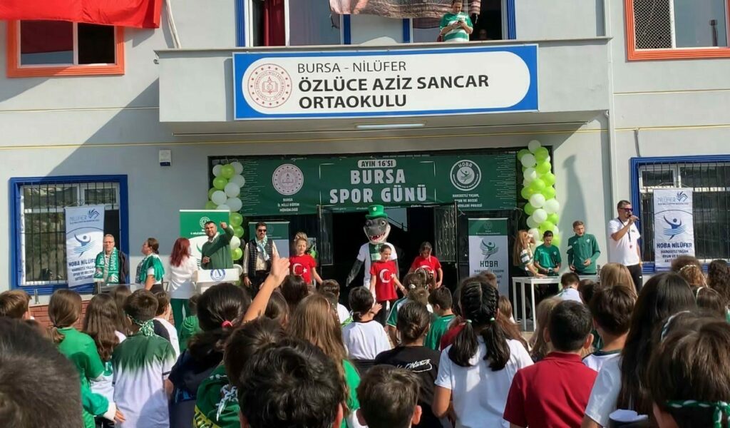 Spor Günü etkinliklerinin ilki Nilüfer Özlüce Aziz Sancar Ortaokulunda gerçekleştirildi. Etkinliğe Bursa İl Milli Eğitim Müdür Yardımcısı Abdulkadir Çınar, Bursaspor Kulübü Başkanı Enes Çelik, Teknik Direktör Tahsin Tam ve Bursasporlu futbolcular katıldı.