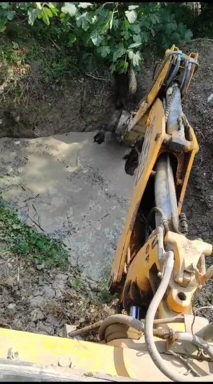 İş makinesinin desteği ile su dolu havuzdan çıkarılan domuzlar yaban hayatına geri döndü.
