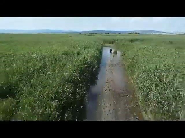 Dronu takip eden O.I, sazlıklardan bu şekilde kurtulmayı başardı.