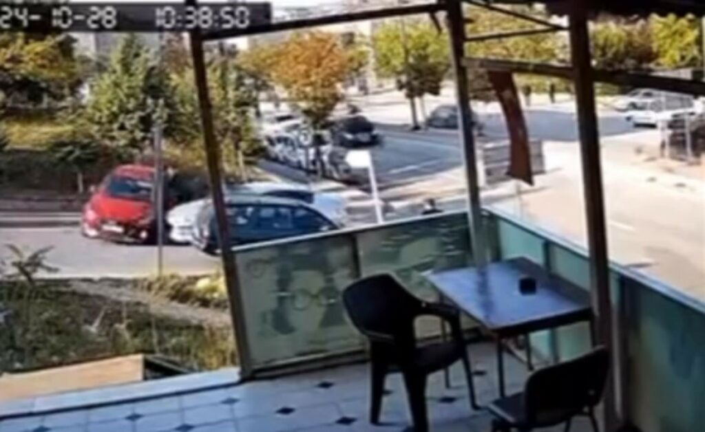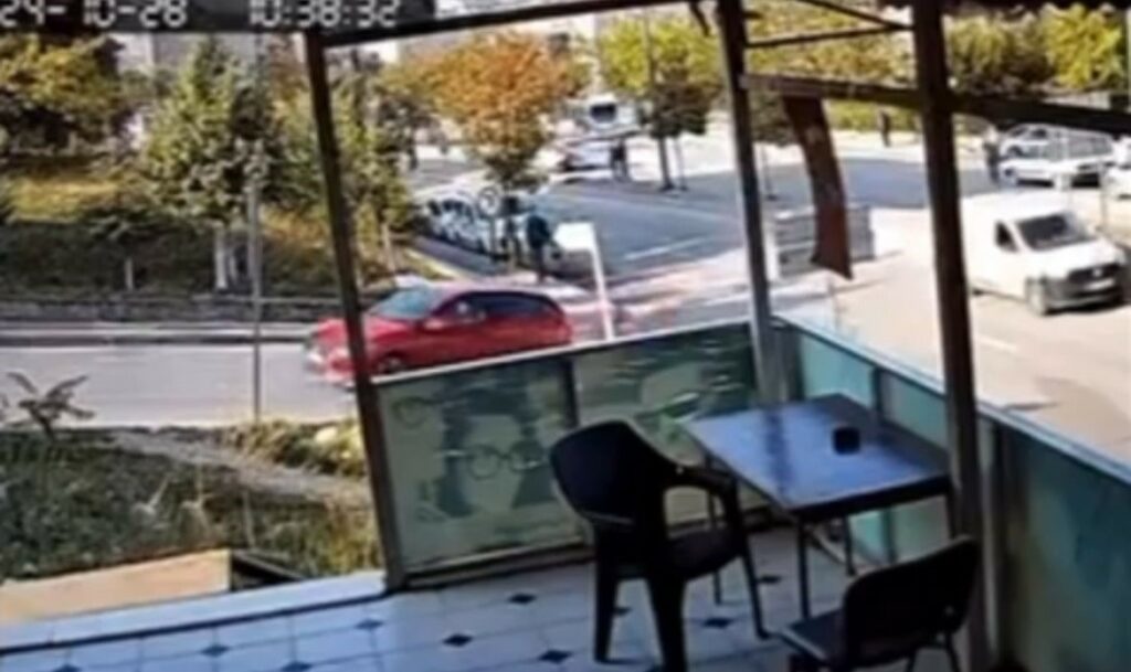 Bursa’da aracıyla yokuş çıktığı sırada fenalaşan sürücü ayağını gazdan çekince, geri geri hareket etmeye başladı. Süratle gelen otomobil önce karşıya geçmek isteyen yayaya ardından dönüş yapan otomobile çarptı. O anlar kameraya yansırken, otomobilin çarptığı kişi hafif yaralandı.