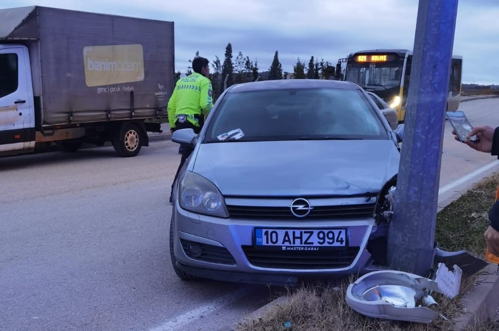 Kaza, saat 18.00 sıralarında Baykoca Mahallesi Yeni İnegöl Caddesi üzerinde meydana geldi. Emran D. (29) idaresindeki 10 AHZ 994 plakalı otomobil sürücüsünün kontrolünden çıkarak yoldan karşıya geçmeye çalışan 2 yayaya ardından aydınlatma direğine çarptı.