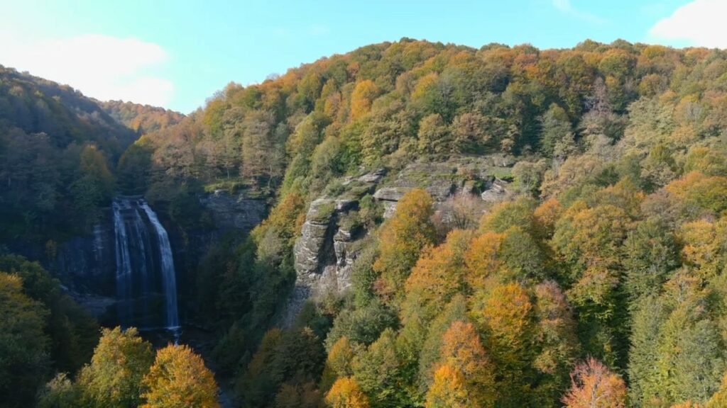 Bursa’nın Mustafakemalpaşa ilçesinde, doğal güzelliğiyle bilinen Suuçtu Şelalesi sonbaharda renk cümbüşüyle adeta görsel bir şölen sunuyor.