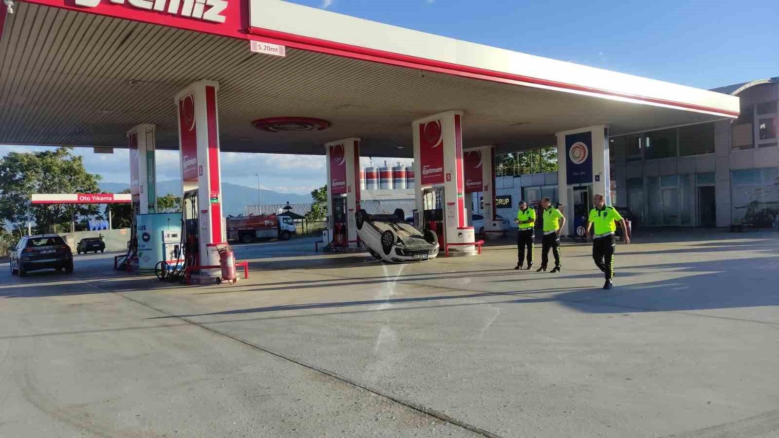 Takla atan araç akaryakıt istasyonuna daldı, faciadan dönüldü