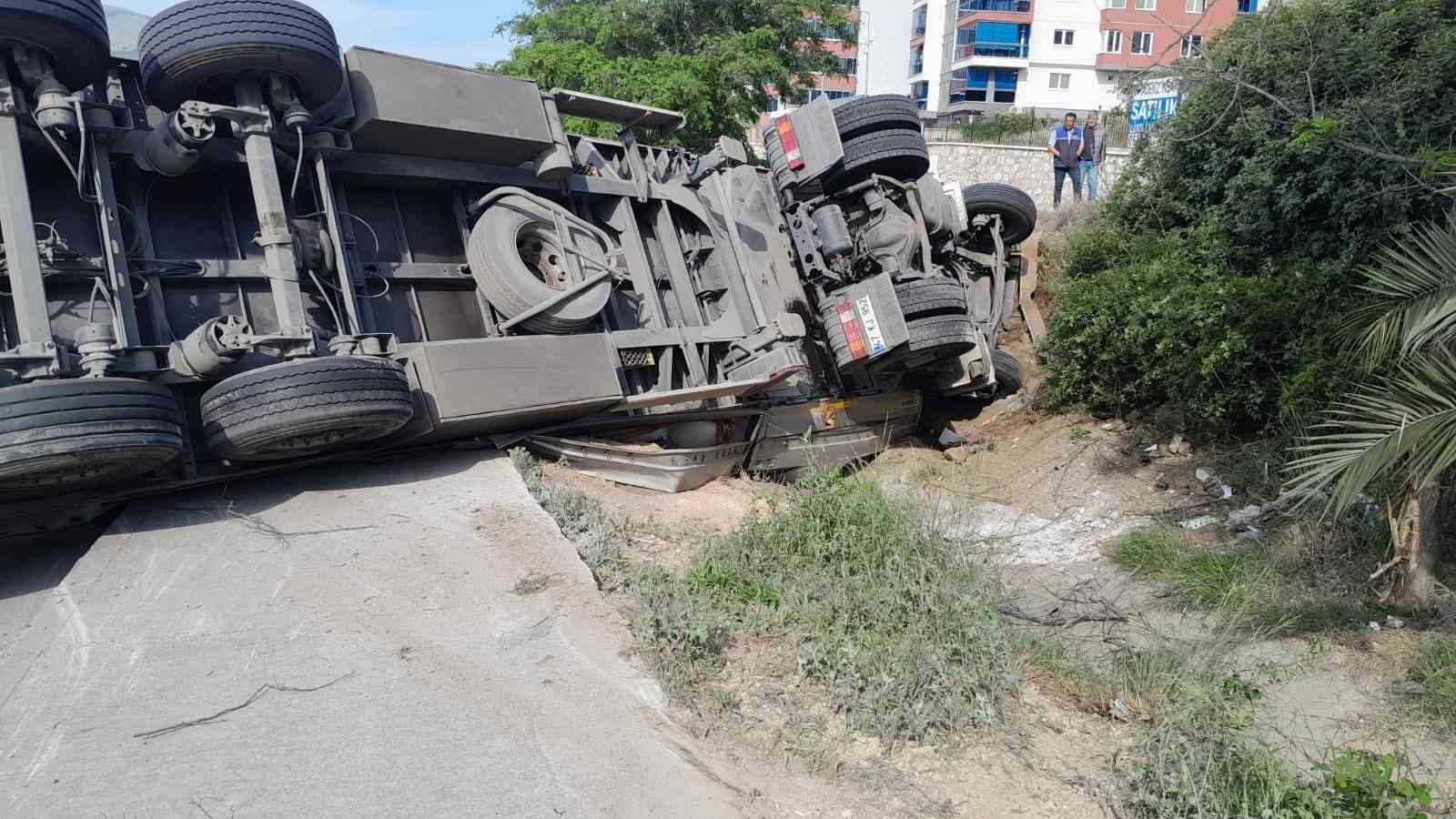 Bursa’nın Gemlik ilçesinde takla atan tır, yolu trafiği kapattı.