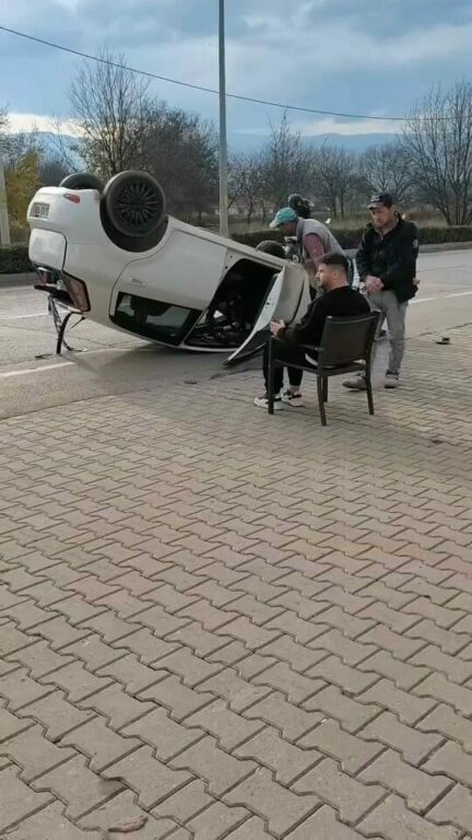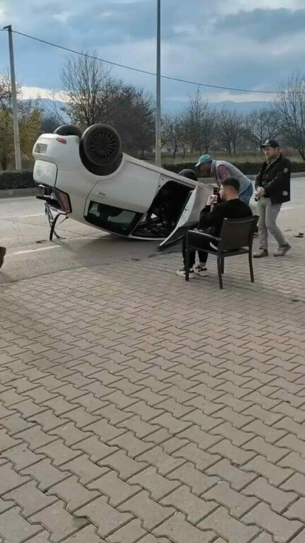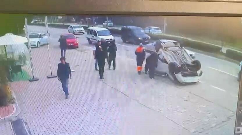 Bursa’nın İnegöl ilçesinde kontrolden çıkan otomobil, refüje çarpıp takla atarak sürüklendi. Kaza anı bir işyerinin güvenlik kamerasına yansıdı.