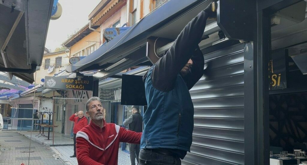 İstanbul’un Çiçek Pasajı’na rakip olarak gösterilen Bursa’daki tarihi Arap Şükrü Sokağı’ndaki işletmelerin uzun süredir kullandığı tenteler ve cam bölmeler, “kaldırım işgali” gerekçesiyle kaldırılmaya başlandı. Sabah saatlerinde bölgeye gelen belediye ekipleri, sokaktaki 14 işletmeye uyarıda bulunarak işgaliye alanı dışında kalan tüm eklentilerin sökülmesini istedi. Çevik kuvvet ekipleri de yoğun güvenlik tedbiri aldı.