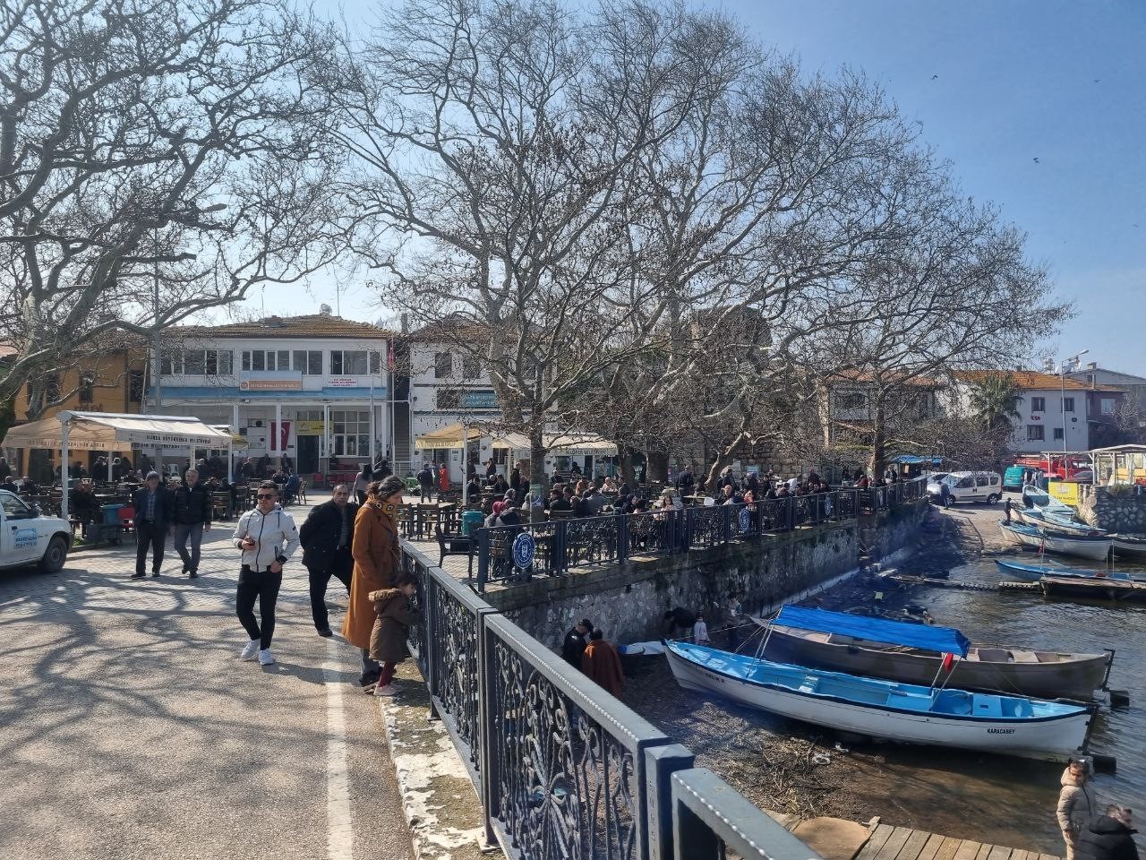 Bursa’da güneşli havayı fırsat bilen vatandaşlar, Gölyazı’ya akın etti.