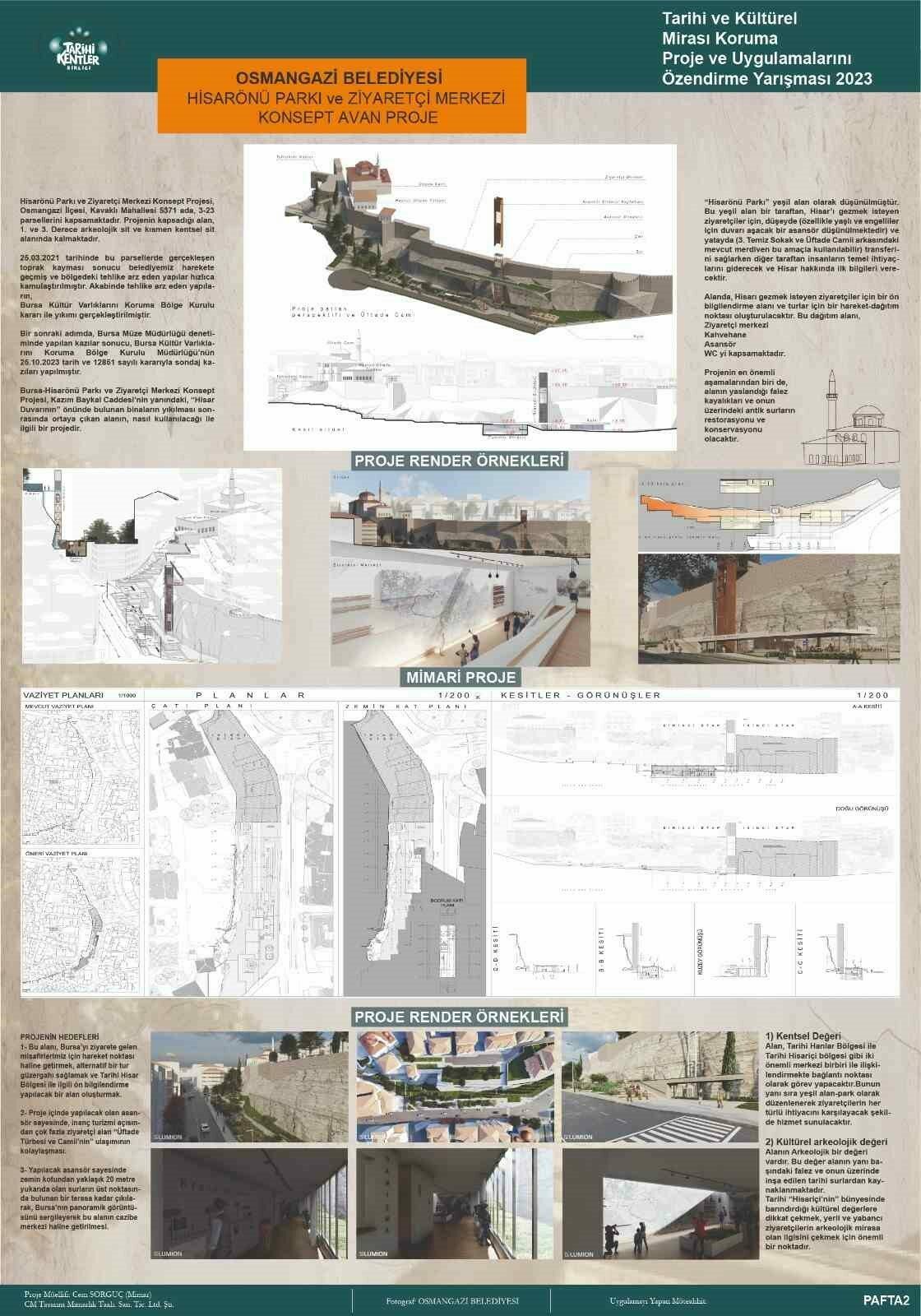 OSMANGAZİ BELEDİYESİ, ‘HİSARÖNÜ PARKI VE ZİYARETÇİ MERKEZİ KONSEPT PROJESİ’ İLE TARİHİ KENTLER BİRLİĞİ’NİN 23. TARİHİ VE KÜLTÜREL MİRASI KORUMA PROJE VE UYGULAMALARINI ÖZENDİRME YARIŞMASI’NDA SÜREKLİLİK ÖDÜLÜNE LAYIK GÖRÜLDÜ.