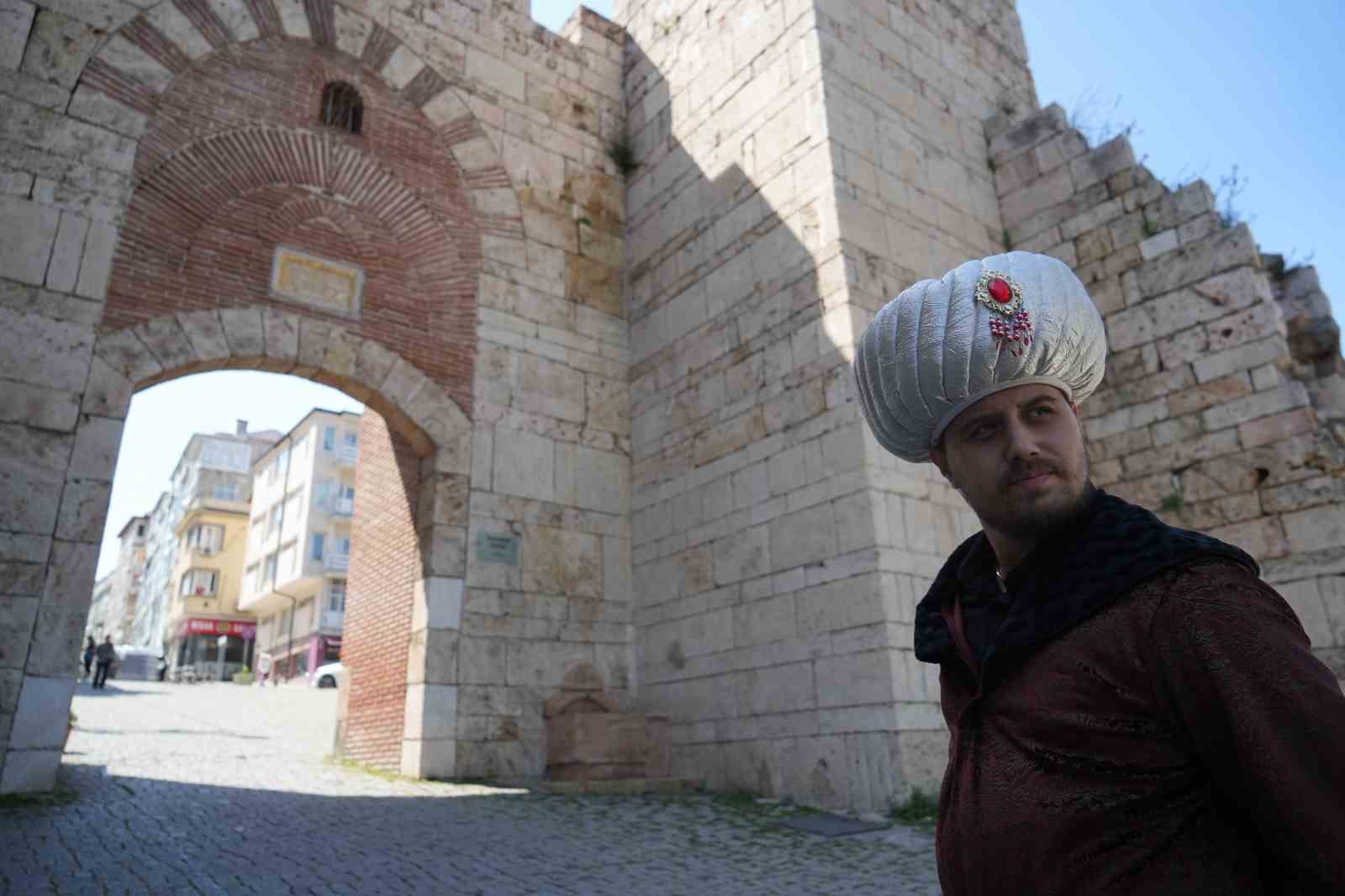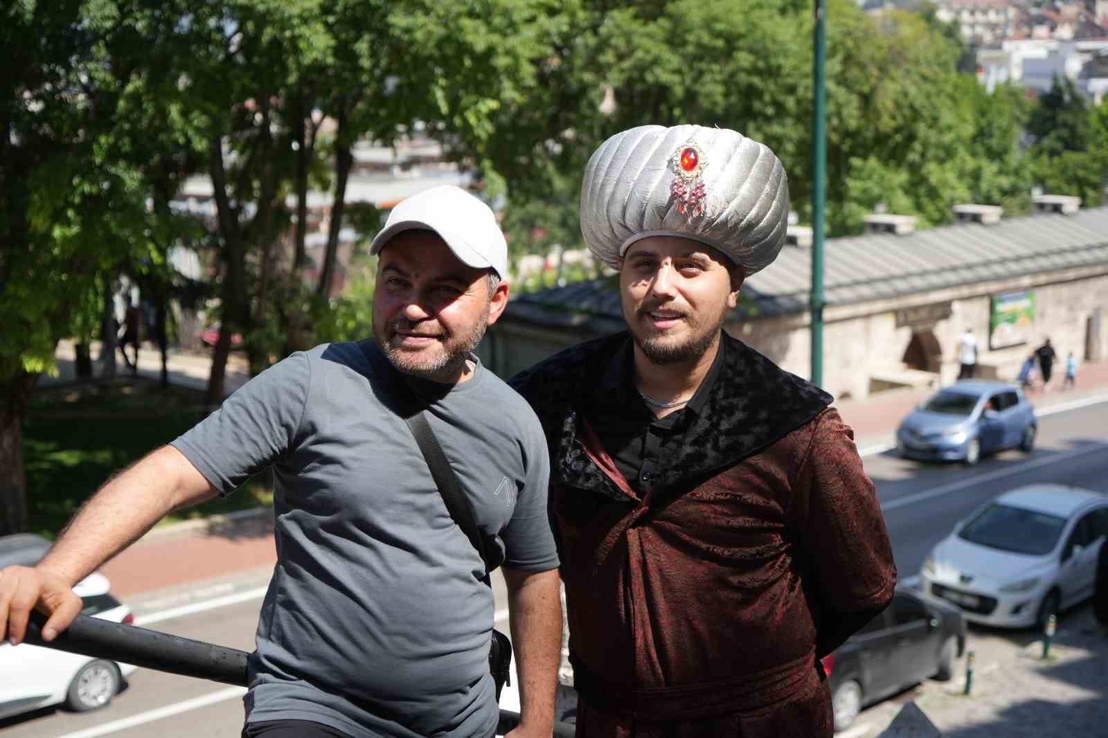 Tarihi surlara çıkanlar karşılarında padişah kıyafetli fenomeni gördü