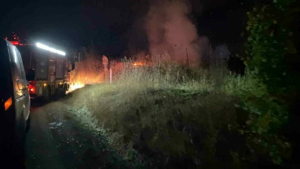 Bursa’nın İnegöl ilçesinde tarladaki 2 baraka alev alev yandı.