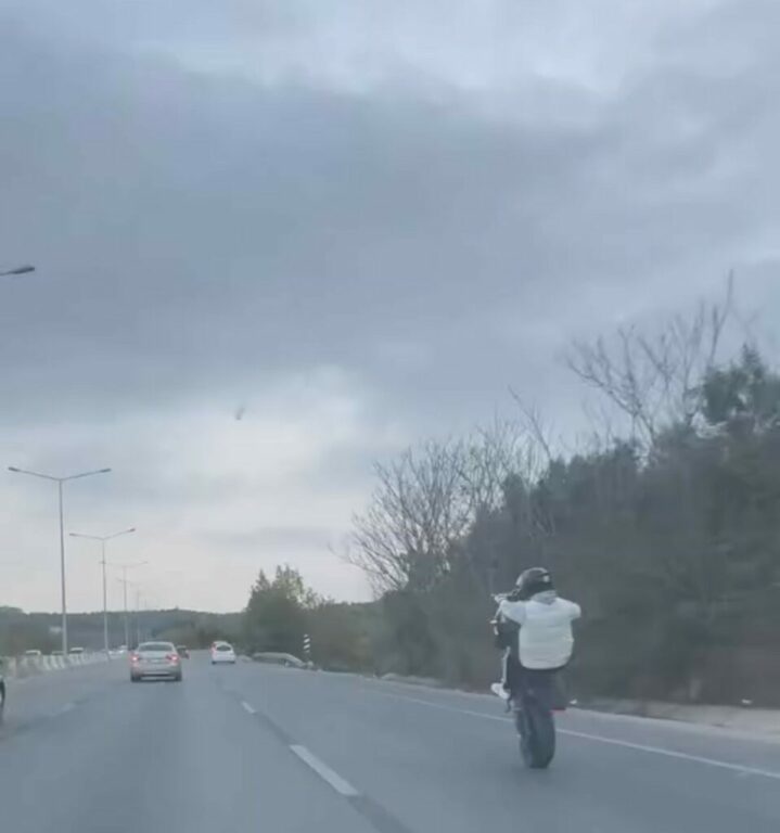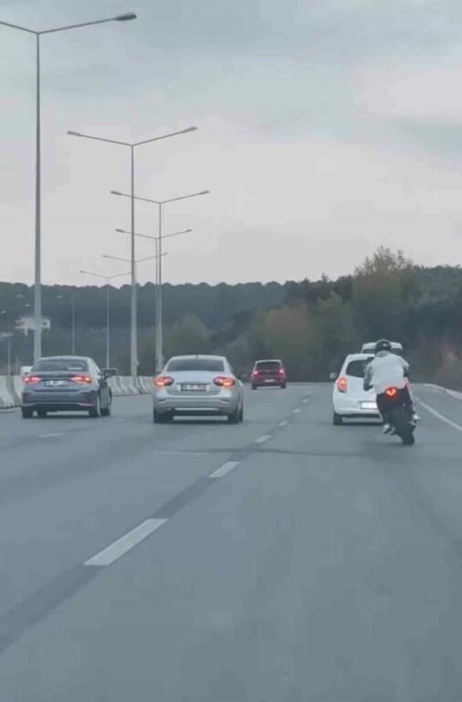 Bursa Mudanya Yolu merkez istikamet üzerinde seyir halindeki bir motosiklet sürücüsü yaptığı hareketle yürekleri ağza getirdi. Anayolda ilerleyen motosikletli tek teker üzerinde kilometrelerce seyretti. Hem kendinin hem de trafikteki diğer vatandaşların canını hiçe sayan sürücü, trafikteki diğer sürücülerin kamerasına yansıdı.