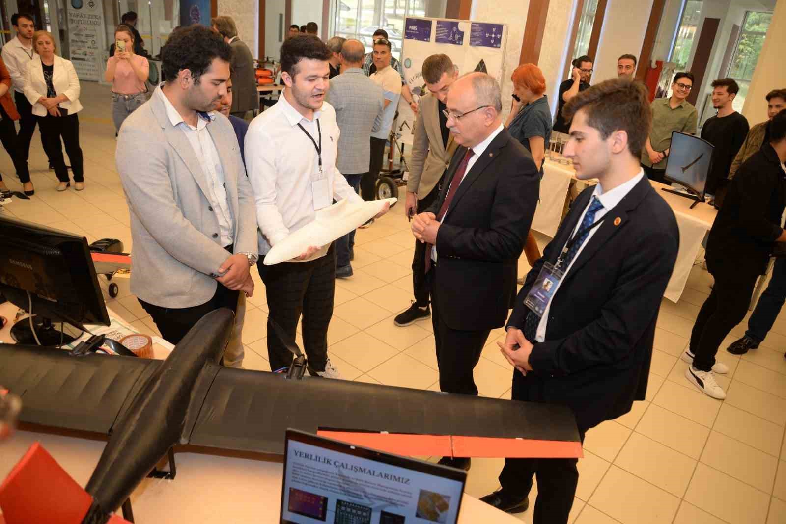 Öğrencilerle bir araya gelen Rektör Prof. Dr. Ferudun Yılmaz, TEKNOFEST organizasyonlarının her zaman kendilerini heyecanlandırdığını vurguladı. Öğrenci projelerini incelediğini ve yapılan tüm çalışmalarla gurur duyduğunu belirten Prof. Dr. Ferudun Yılmazü, “Üniversite olarak ilk defa bir proje sergisi düzenliyoruz. Geçmiş yıllarda öğrencilerimizle bir araya geliyor ve kısmı konuşmalar yapıyorduk. Ancak bu defa çok daha geniş çaplı bir organizasyon yapalım ve projelerin ne aşamada olduğunu görelim istedik. Sergilenen eserleri inceledik, takım üyeleriyle yaptıkları çalışmalar hakkında bilgi alışverişinde bulunduk. Eksikler veya talepleri dinledik. Gördüklerimiz bizi çok mutlu etti. Yer aldığımız araştırma üniversiteleri liginde ciddi bir rekabet var. Yarış daha çok fen, mühendislik ve tıp alanlarında geçiyor. Bizim de bu alanlarda rakiplerimizden aşağı kalır yanımız yok. Akademik ve bilimsel çalışmalarımız ciddi bir ivme ile yükseliyor. Öğrencilerimizin ürettiği projeler de bizlere ayrıca kazanım olarak geri dönecektir. Bu anlamda her bir çalışma ve proje ile gurur duyuyoruz. Emeği geçenlere bir kez daha teşekkür ediyoruz” dedi.