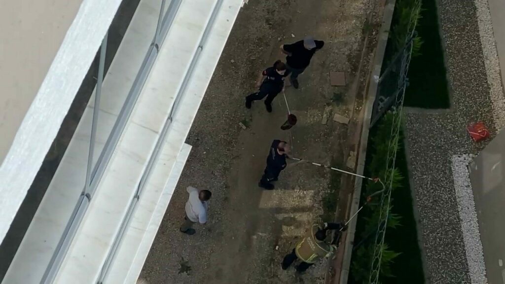Vatandaşlar ise, 1,5 metre boyundaki yılanın ekipler tarafından kurtarılmasını tedirgin gözlerle camlardan izledi.