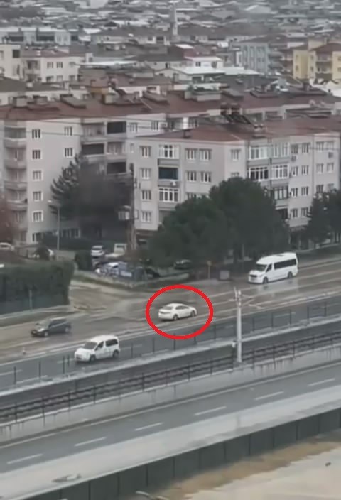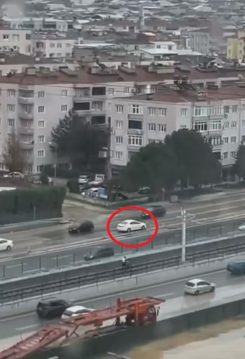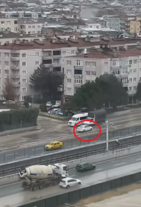 Yavaş hareketlerle ilerleyen şoför, adeta ölümle dans etti. Tehlikeli anlar saniye saniye cep telefonu kamerasına yansıdı.