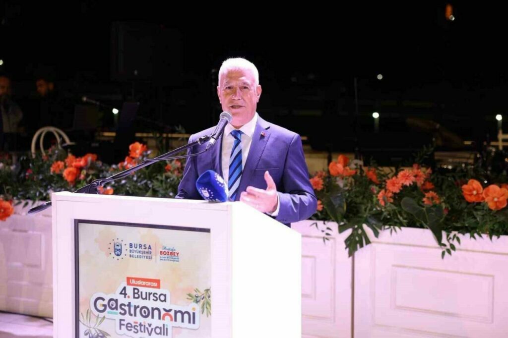 Bursa’nın zengin ve köklü mutfak kültürünü dünyaya duyurmak ve gastronomi turizminden hak ettiği payı alabilmesini sağlamak amacıyla Büyükşehir Belediyesi tarafından hazırlanan 4. Bursa Uluslararası Gastronomi Festivali, şehir içinden ve şehir dışından gelen lezzet tutkunlarının yoğun ilgisiyle sürüyor. Bursa Büyükşehir Belediye Başkanı Mustafa Bozbey de eşi Seden Bozbey ile birlikte gala yemeğinde sektör paydaşlarıyla buluştu.