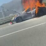 Bursa’nın Gemlik ilçesinde Tesla marka elektrikli otomobil alev alev yandı. Sürücünün son anda yol kenarına çekip terk ettiği otomobil saniyeler içerisinde küle döndü. O anlar kameraya yansıdı.