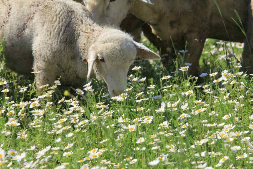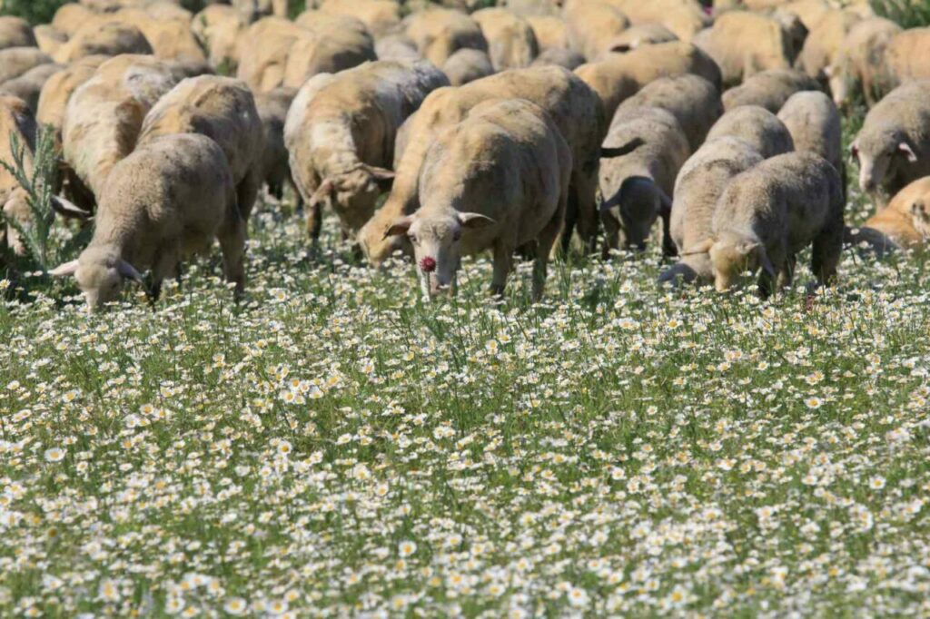 Dönümlerce alanda kendiliğinden yetişen papatyalar, doğanın kendi eliyle şekillenmiş gibi etkileyici bir güzellik sunuyor. Meralara çıkarılan Karacabey merinosu, kıvırcık ve Türktahirova ırkı koyun ve koçlar da kuzularıyla papatya manzarasında otluyor.