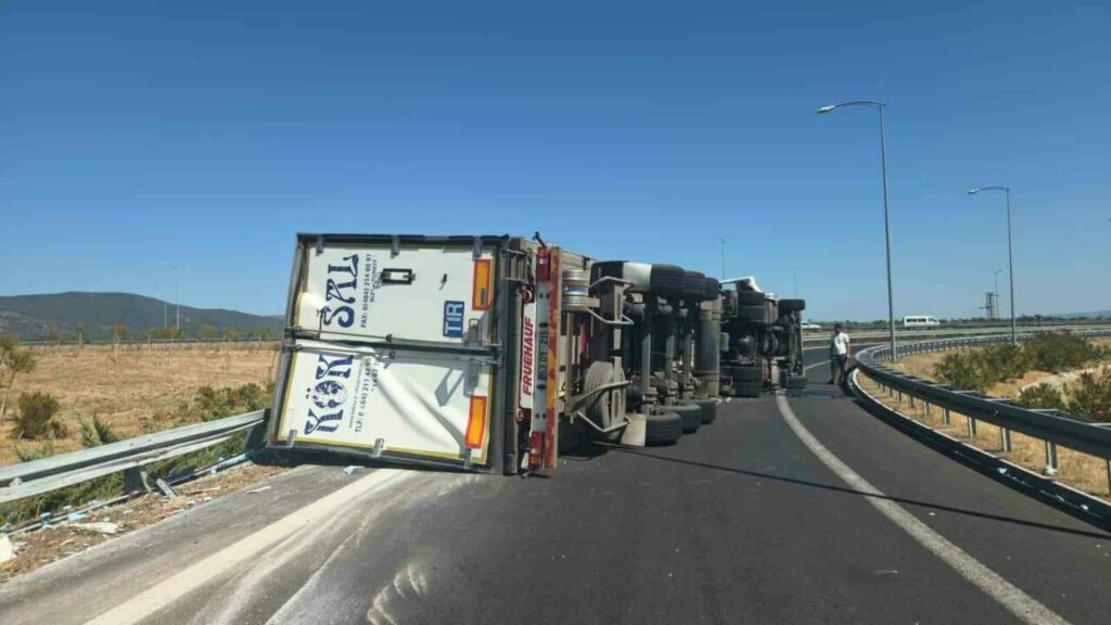 Bursa’nın Orhangazi ilçesinde Gebze-Orhangazi-İzmir Otoyolu Orhangazi kavşağında devrilen tır trafiği tamamen kapattı. Yaklaşık 3 saat kavşaktan Bursa istikametine dönüş trafiğe kapandı. Kazada tır sürücüsü hafif yaralandı.