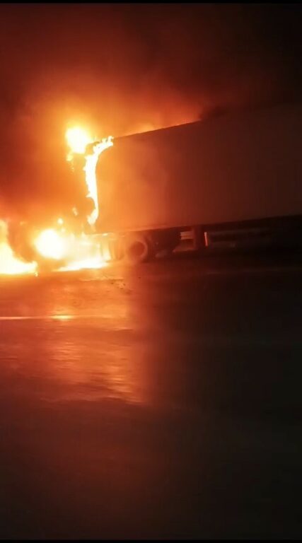 BURSA’DA BURSA-GEMLİK YOLU ÜZERİNDE TIR ALEV ALEV YANDI. O ANLAR ANBEAN AMATÖR KAMERALARA YANSIDI.