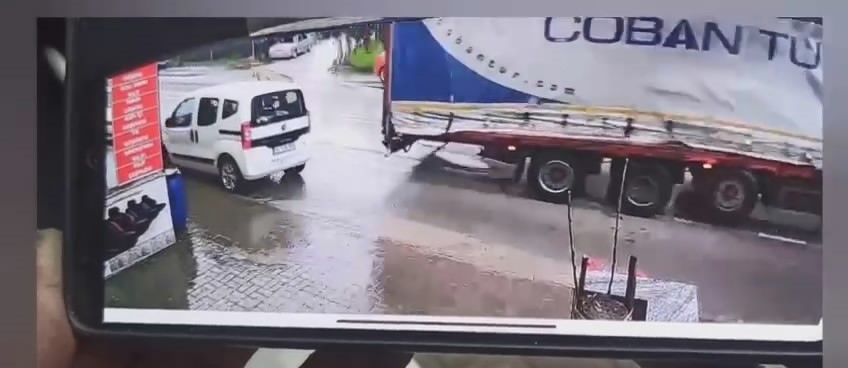 Kaza, merkez Osmangazi ilçesi Yunuseli Mahallesi Fuat Kuşçuoğlu Caddesi üzerinde meydana geldi. Edinilen bilgiye göre, yağmur nedeniyle kayganlaşan yolda sürücüsünün kontrolünden çıkan tır, park halindeki hafif ticari araca dorsesi ile çarptı. Kazada yaralanan olmazken kaza anı bir işyerinin güvenlik kamerasına yansıdı.