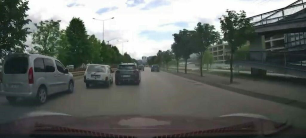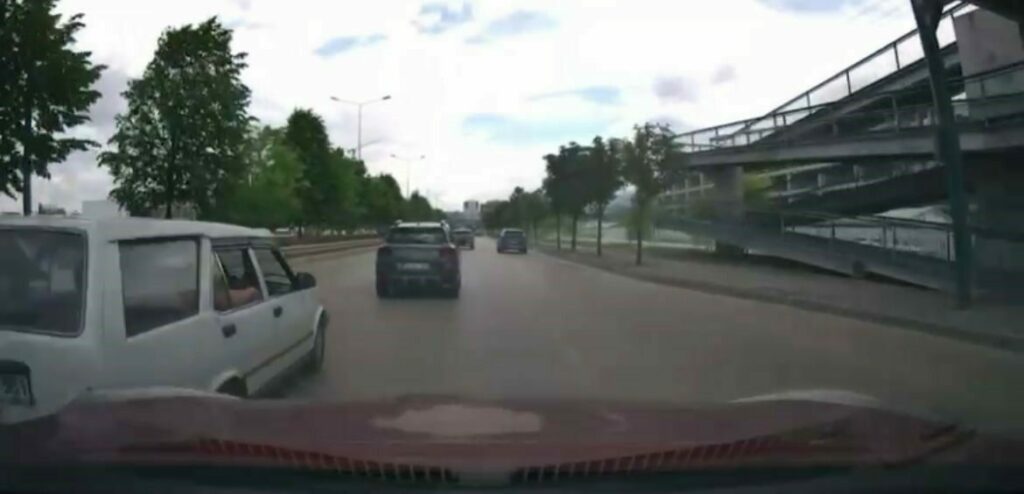 Bursa’nın Osmangazi ilçesi İzmir Yolu Caddesi üzerinde ilerleyen TOFAŞ marka bir otomobilin sürücü iki aracın arasından geçmek isteyince gaza yüklendi. Makas atarak giden otomobil kazayı teğet geçince, diğer sürücüler korna çalarak tepki gösterdi. Ölümüne makas atan sürücü ise araç içi kamerasıyla saniye saniye görüntülendi.