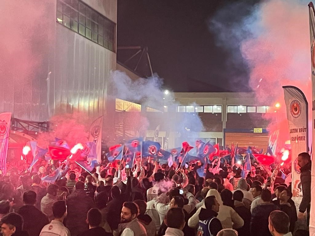 İşçi sendikaları ile Türk Metal Sendikası (MESS) arasında yürütülen toplu iş sözleşmesi grev aşamasında imzalandı. İşçiler, aldıkları zam haberini davul-zurna ve meşaleler ile sabaha kadar kutladı.