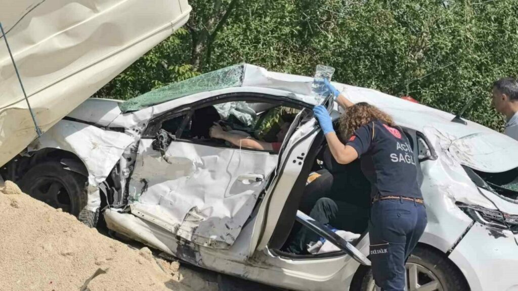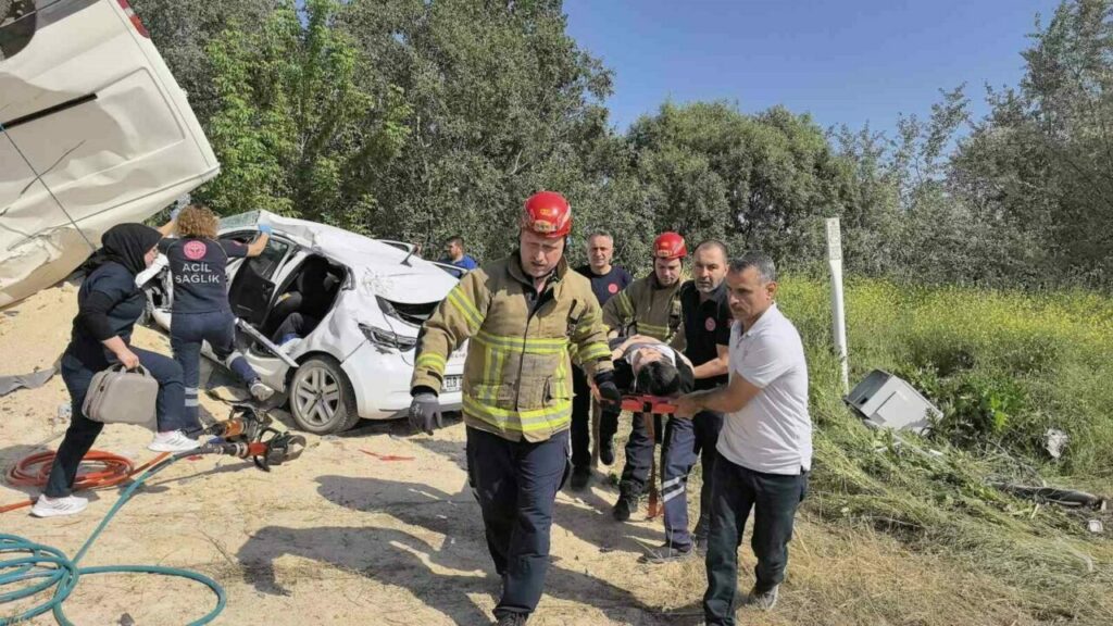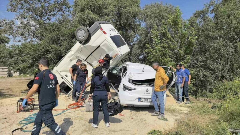 Bursa’nın İnegöl ilçesinde meydana gelen kazada otomobil ile çarpışan minibüs ters döndü. 2’si ağır 3 kişi yaralanırken, kaza yeri havadan görüntülendi. Sağlık ve kurtarma ekipleri zamanla yarışırken, ambulans görevlisinin otomobil sürücüne takılan serumu uzun süre havada tutarak akışını sağlaması dikkat çekti. Kaza anı da güvenlik kamerasına yansıdı.