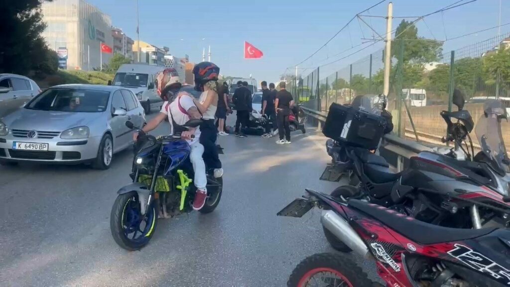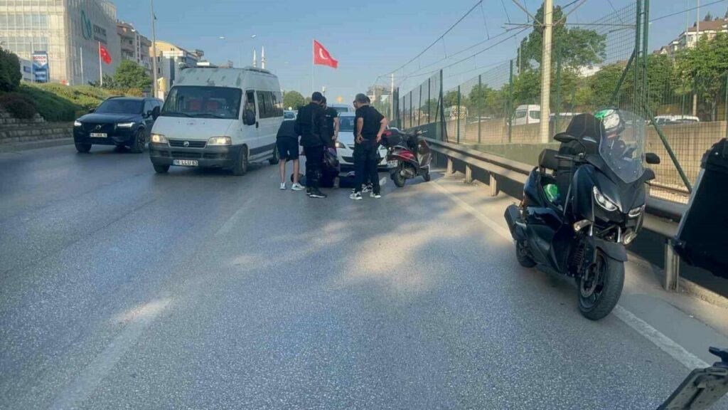 Bursa’da trafikte araçların arasından hızla ilerleyen motosikletliler, kaza yaptı. Yaralanan motosiklet sürücüsü, uzun süre yolun ortasında yatarak sağlık ekibi bekledi. Kaza anı bir araç kamerasına yansıdı.