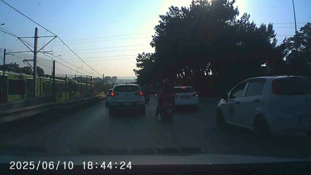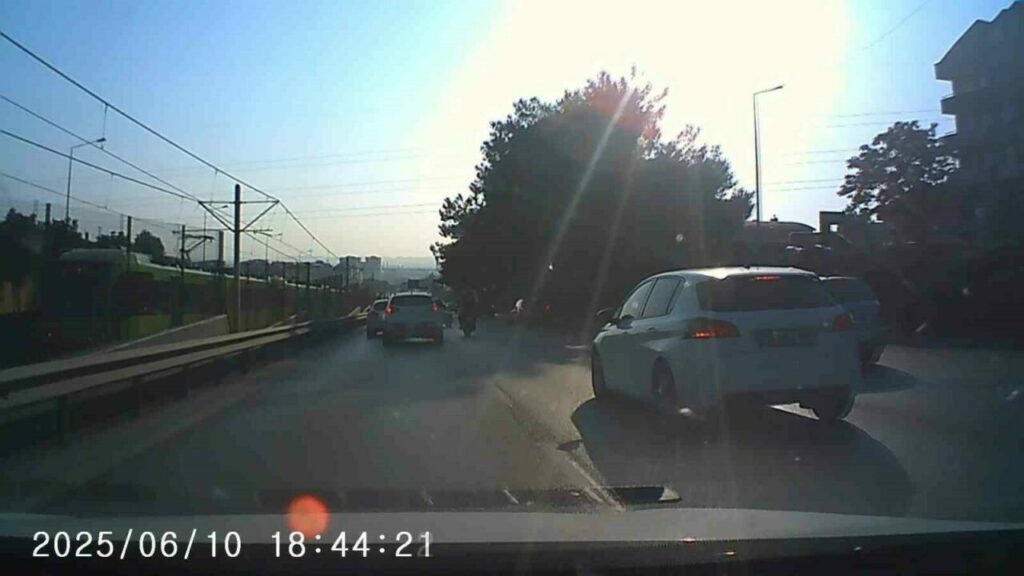 Kaza, araç kamerasına da saniye saniye yansırken, motosikletlilerin araçların arasından akrobasi yapar gibi ilerlemesi de kayda alındı.