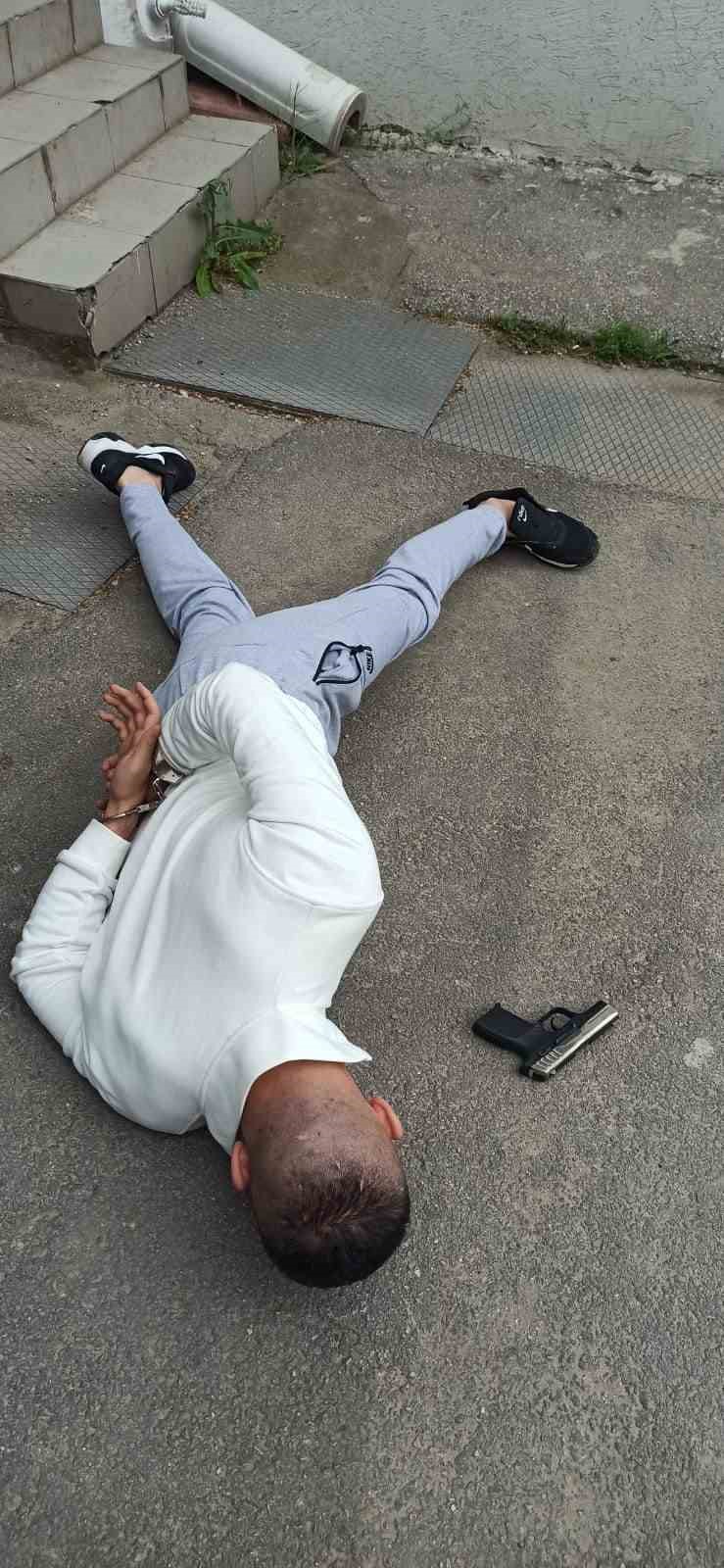 Silah seslerini duyan vatandaşların ihbarı üzerine olay yerine çok sayıda polis ekibi sevk edildi. Çevredeki güvenlik kameralarını inceleyen ekipler, şahsın 27 yıl 6 ay kesinleşmiş hapis cezası ile aranan B.A. olduğunu belirledi. Harekete geçen ekipler, B.A.’yı Demirtaş Sakarya Mahallesi’nde yakaladı. B.A.’nın yapılan üst aramasında, 1 adet silah ve bu silaha ait dolu şarjör ele geçirdi. B.A., gerekli işlemler için Gasp Büro Amirliği’ne teslim edildi.