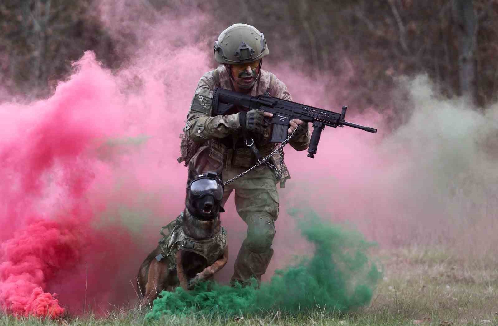 Her türlü arazi şartlarında ve muharebe şartlarında görev yapabilen TSK’nın kahraman köpekleri, görev yerlerinden önce önemli sınavlardan geçiyor. Genellikle Belçika Malinois türünden seçilen ve özenle eğitilen köpekler muharebe safhasından önce, en zor arazi şartlarında mücadele ederek çeşitli görevlere tabi tutuluyor.