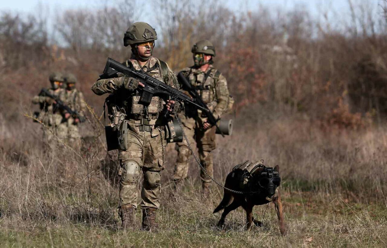Kahraman Mehmetçik’in yurt içinde ve sınır ötesinde gerçekleştirdiği operasyonlarda yanlarında yer alan özel eğitimli köpekler, Bursa’daki Askeri Veteriner Okulu ve Eğitim Merkezi Komutanlığı Köpek Üretim ve Eğitim Tabur Komutanlığı’nda özel yöntemlerle eğitiliyor.