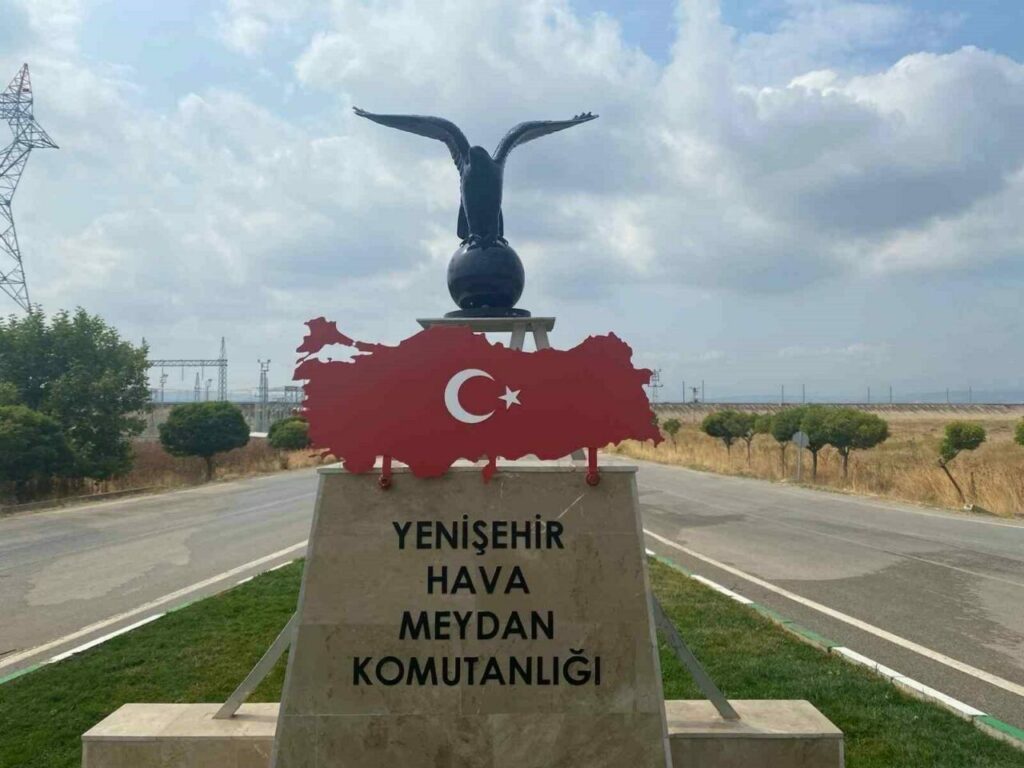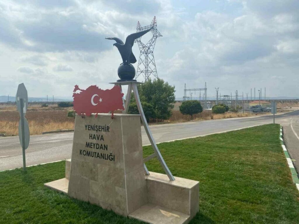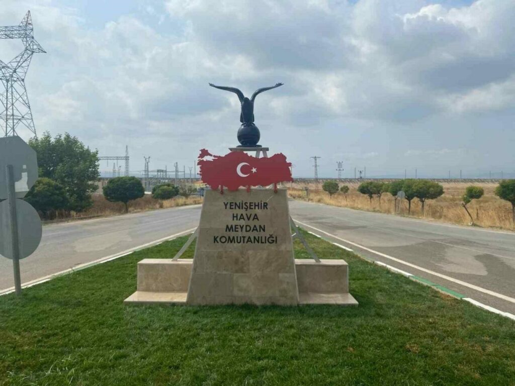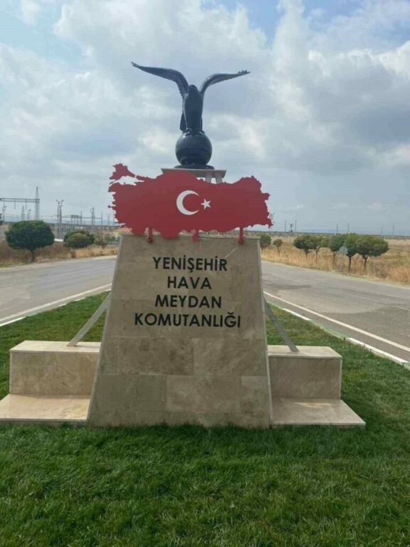 Bursa Yenişehir Hava Meydan Komutanlığı kavşağına yapılan Kartal figürü ve Türk Bayrağı görseli vatandaşın beğenisini kazanıyor.