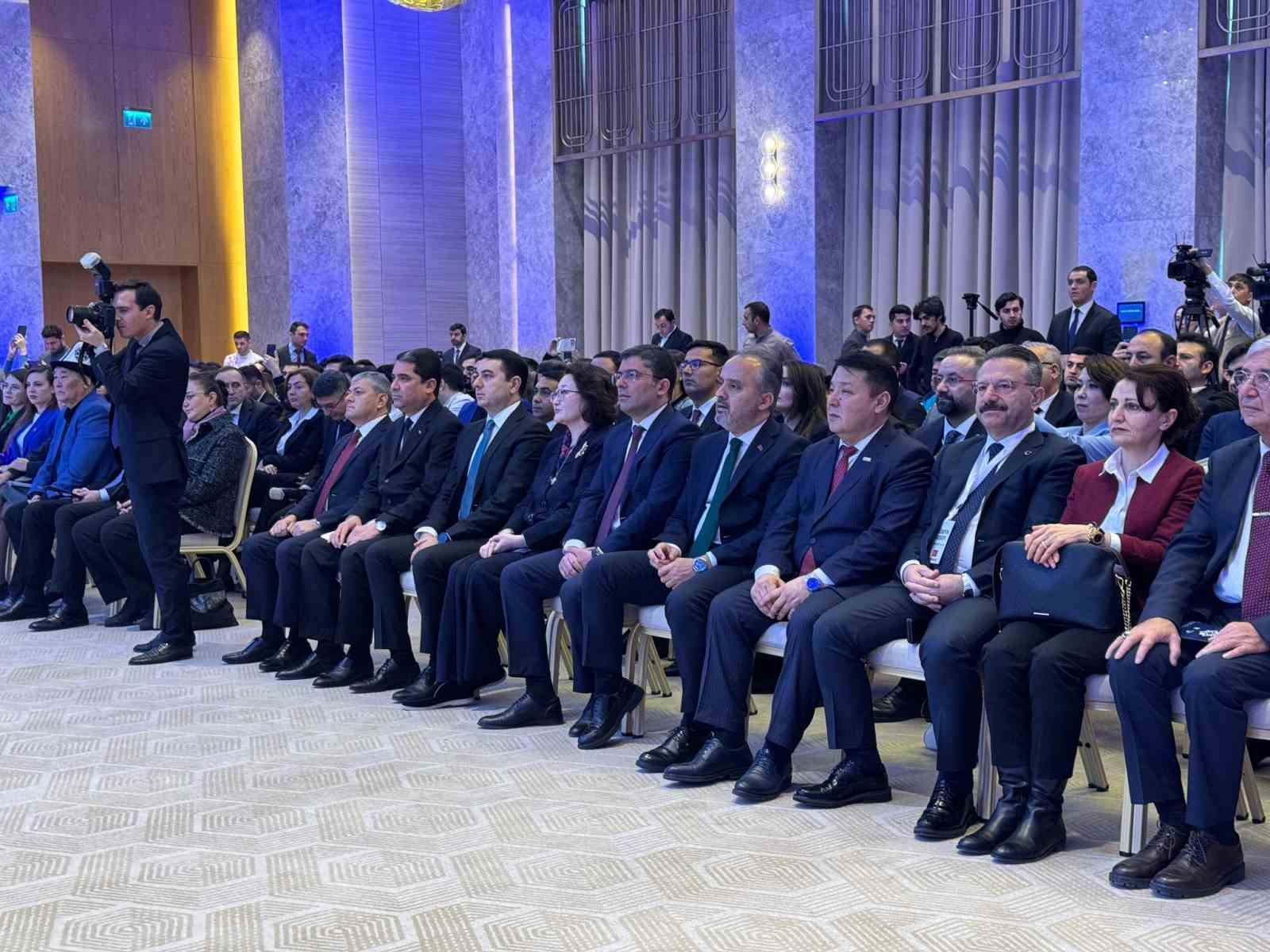 Türk dünyası adına önemli bir sorumluluk üstlenin Bursa Büyükşehir Belediye Başkanı Alinur Aktaş, “Öncelikle şahsıma ve şehrime tevdi edilen başkanlık görevi nedeniyle herkese teşekkür ediyorum. 2024’ün ilk yarısında bir araya gelip, bu süreci en işi şekilde devam ettireceğimizi de buradan ifade etmek istiyorum. Kültür Başkenti sorumlusu yetkili valilerimizle, başkanlarımızla, temsilcilerimizle yapılacakları konuşacağız. Kültür başkentliği sadece bir yıl, bir ülkede kalıp, bir daha hiçbir organizasyonun yapılmadığı süreçten çıkarıp, hem kültürel, hem sanatsal, hem kadim medeniyetimizin kodlarının işleneceği ama beraberinde ekonomik ve turizm anlamında da etkileşimin olacağı, şehirleşmeyle alakalı tecrübelerin paylaşılacağı bir iklimi bu vesile ile oluşturmaya çalışacağız. Dolayısıyla bundan 8-10 yıl önce bile kültür başkenti olmuş bir şehrimizin bu aktivitelerle bunu daha fazla hissetmesini ve hissettirmesini sağlamış olacağız. Hayırlı, uğurlu olmasını temenni ediyorum” dedi.