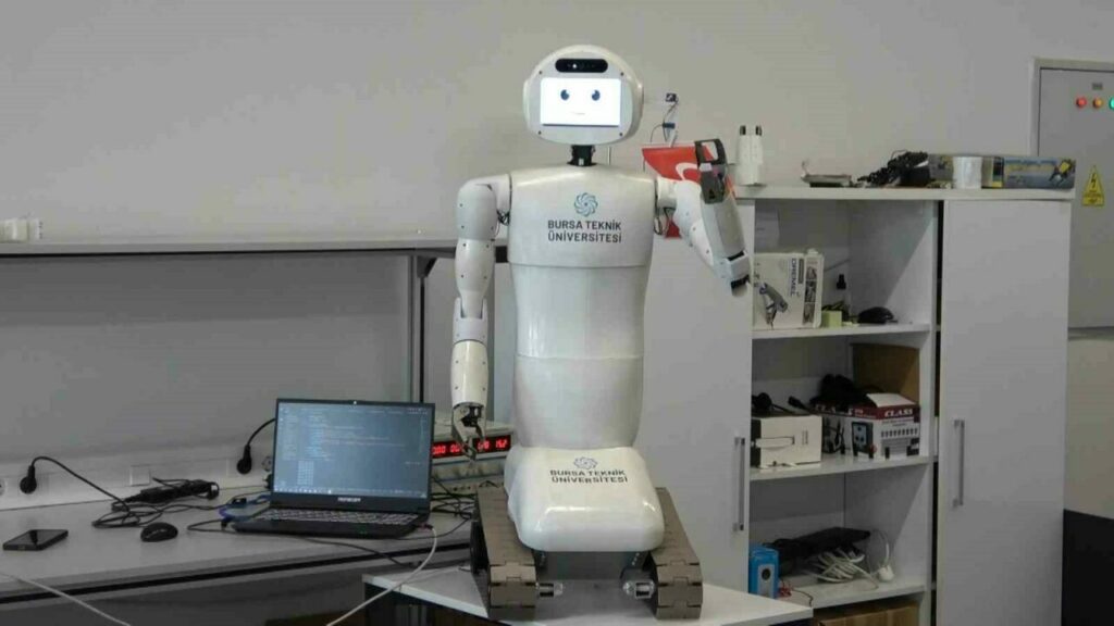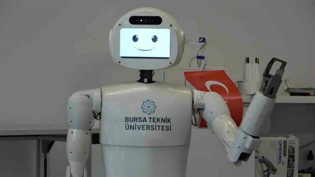 Bursa Teknik Üniversitesi Robot Teknolojileri ve Akıllı Sistemler Uygulama ve Araştırma Merkezi’nde yapay zekâ destekli insansı sosyal robot projesine imza atıldı. Mekatronik Mühendisliği Bölümü’nden proje yürütücüsü Dr. Öğretim Üyesi Nurettin Gökhan Adar ve yardımcı araştırmacı Dr. Öğretim Üyesi Mustafa Özden tarafından geliştirilen robotun, tasarım, imalat ve yazılım iş paketleri için Mekatronik, Elektrik-Elektronik ve Makine Mühendisliği bölümlerinden lisans ve yüksek lisans öğrencilerinden bir ekip oluşturuldu. 2024 yılı şubat ayında çalışmalarına başlanan robot, Türkiye’de akademik alanda bir ilk olma özelliği taşıyor. Yapay zekâ destekli sosyal mobil insansı robot, Yükseköğretim Kurulu (YÖK) Başkanı Prof. Dr. Erol Özvar’a da tanıtıldı. İnsanlarla etkileşime girme kabiliyetine sahip olan robotun tasarımı, imalatı ve yazılımının tamamı BTÜ bünyesinde gerçekleştiriliyor.