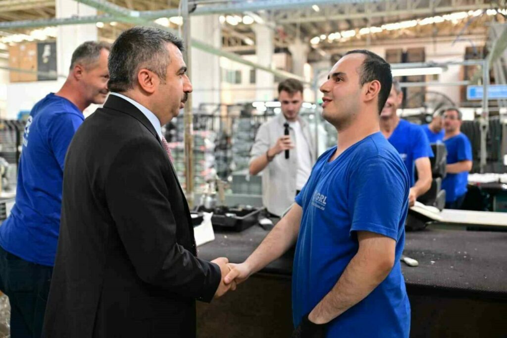 Destekli İstihdam Projesi kapsamında işe yerleştirdikleri 27 yaşındaki Mert Haklı’yı ziyaret eden Yıldırım Belediye Başkanı Oktay Yılmaz, “Sevginin, özverinin, aşamayacağı bir engel yok. Bu farkındalıkla göreve geldiğimiz ilk günden itibaren özel gereksinimli kardeşlerimizin hayatlarını kolaylaştırarak, onların topluma entegrasyonu noktasında çalışmalar gerçekleştiriyoruz. Yine, Türkiye’de ilk defa ‘Destekli İstihdam Modeli’ projesini hayata geçiren yerel yönetim olduk. Proje kapsamında özel kardeşlerimizi yeteneklerine göre farklı sektörlere yerleştirdik. İstihdamını sağladığımız kardeşlerimizden biri de Mert. Bugün onu çalıştığı fabrikada ziyaret ettik. Mert 2021 yılında belediyemizin düzenlediği E-KPSS kursuna katılmıştı. Daha sonra Destekli İstihdam Modeli Programımıza dahil oldu. Aldığı eğitimlerin sonunda da istihdam edildi. İşe başladıktan sonra da Mert’i yalnız bırakamadık. İş koçlarımız, fabrika ortamında Mert’i yakından takip ettiler. Hamdolsun Mert uyum sürecini de tamamladı ve kalıcı şekilde istihdam edildi. İnşallah bundan sonra da daha fazla hemşehrimize destek olacak, daha fazla kardeşimizin istihdamın katkı sağlayacağız” ifadelerini kullandı. Ziyaretten dolayı büyük mutluluk yaşadığını ifade eden Mert ise desteklerinden dolayı Başkan Yılmaz’a teşekkür etti.