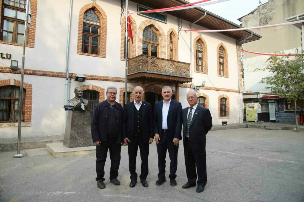 1855 yılında depremde tamamen yıkılsa da 1910’da yeniden inşa edilen, milli mücadele döneminde ise bu kez Yunan askerlerine karargah olan Hoca İlyas Ortaokulu’nun yıkılmadan ayakta kaldığını kaydeden Bozali, “Aynı mekanda eğitimine 1468’den beri devam eden bir kurum. Şu an görülen bina okulumuzun üçüncü binası. Daha önceki binalar da deprem ve benzeri sebeplerden dolayı yıkılmış. Bu bahçemizin içerisinde mevcut kalıntıları da vardır. Ayrıca büyük afetler haricinde eğitimin kesintiye uğramadığı bir okul burası. 556 yıllık bir eğitim geçmişine sahip olan bir kurum. 1855 yılındaki depremde tamamen yıkıldığını biliyoruz. 1910 yılında Vakıflar Müdürlüğü tarafından günümüzdeki bina inşa edilmiş. Daha sonra bu bina Bursa’nın işgalini de görmüş. Hatta kitabemizin üzerinde enteresan bir ibare var, ‘Müdafa-i Milliye Hoca İlyaszade Vakıf Mektebi’ yani Milli Mücadele mektebi. Milli mücadelede bu okulun ilk müdürlerinden Ömer Fevzi Güven Yunan işgalinde milli mücadeleye destek verdiği için Malta adasına sürgüne gönderilen kişilerden birisi. Ayrıca Yunan işgali döneminde bu okul karargah olarak kullanılmış, hatta terk ederken de binaya bir hayli zarar vermişler. Bin 50 kuruşluk masrafla eski haline getirilebilmiş” dedi.