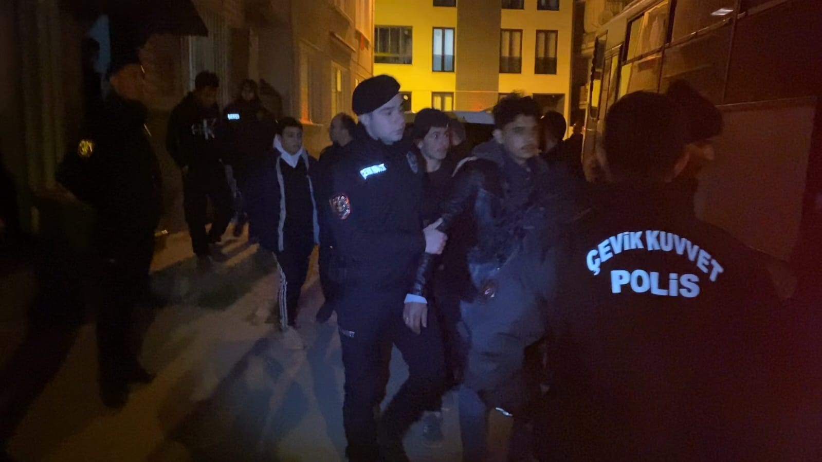 Apartmana baskın düzenleyen ekipler ilçeye kaçak yollarla gelen 12 Suriye uyrukluyu gözaltına aldı.