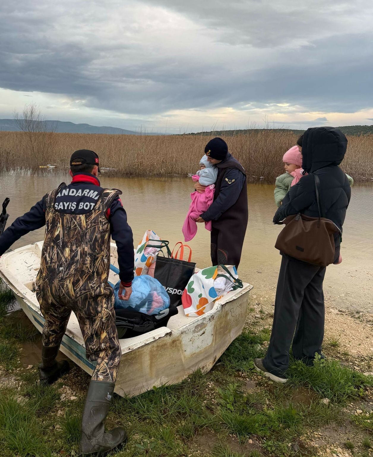 Bursa’da Uluabat Gölü’nde mahsur kalan 1 kadın ve 2 çocuk Nilüfer İlçe Jandarma Komutanlığı Jandarma Asayiş Bot Timi ve Jandarma Asayiş Timleri tarafından kurtarıldı.
