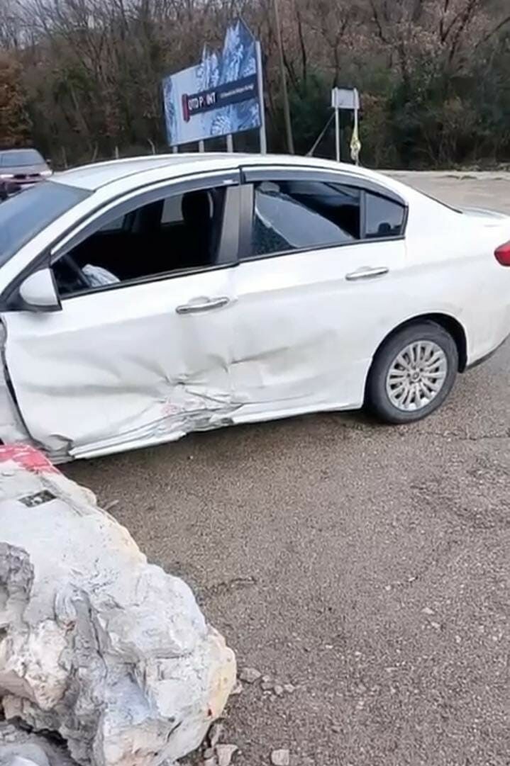 Uludağ yolunda kontrolden çıkan araç bariyerlere çarptı