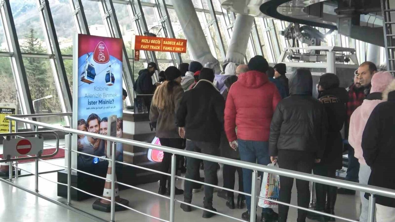 Kış turizminin gözde tatil merkezlerinden olan Uludağ, eksi 10 derece soğuğa rağmen tatilcilerin akınına uğradı. Sömestr ve hafta sonu tatilini Uludağ’da kayak yaparak geçirmek isteyen vatandaşlar teleferiğe akın etti. Son iki gündür yaşanan şiddetli fırtına ve tipi yüzünden dağ yolunun kapanmasından endişe eden tatilciler, araçlarını şehir merkezindeki otoparklara bırakıp, dağa teleferikle çıkmayı tercih edince gidiş ve gelişlerde yoğunluk yaşandı. Kilometrelerce kuyruğun oluştuğu teleferik istasyonlarında tatilcilerin ana yola taştığı görüldü. Araçlarıyla dağa çıkmak isteyenler ise Milli Parklar girişinde kilometrelerce sıra bekledi.