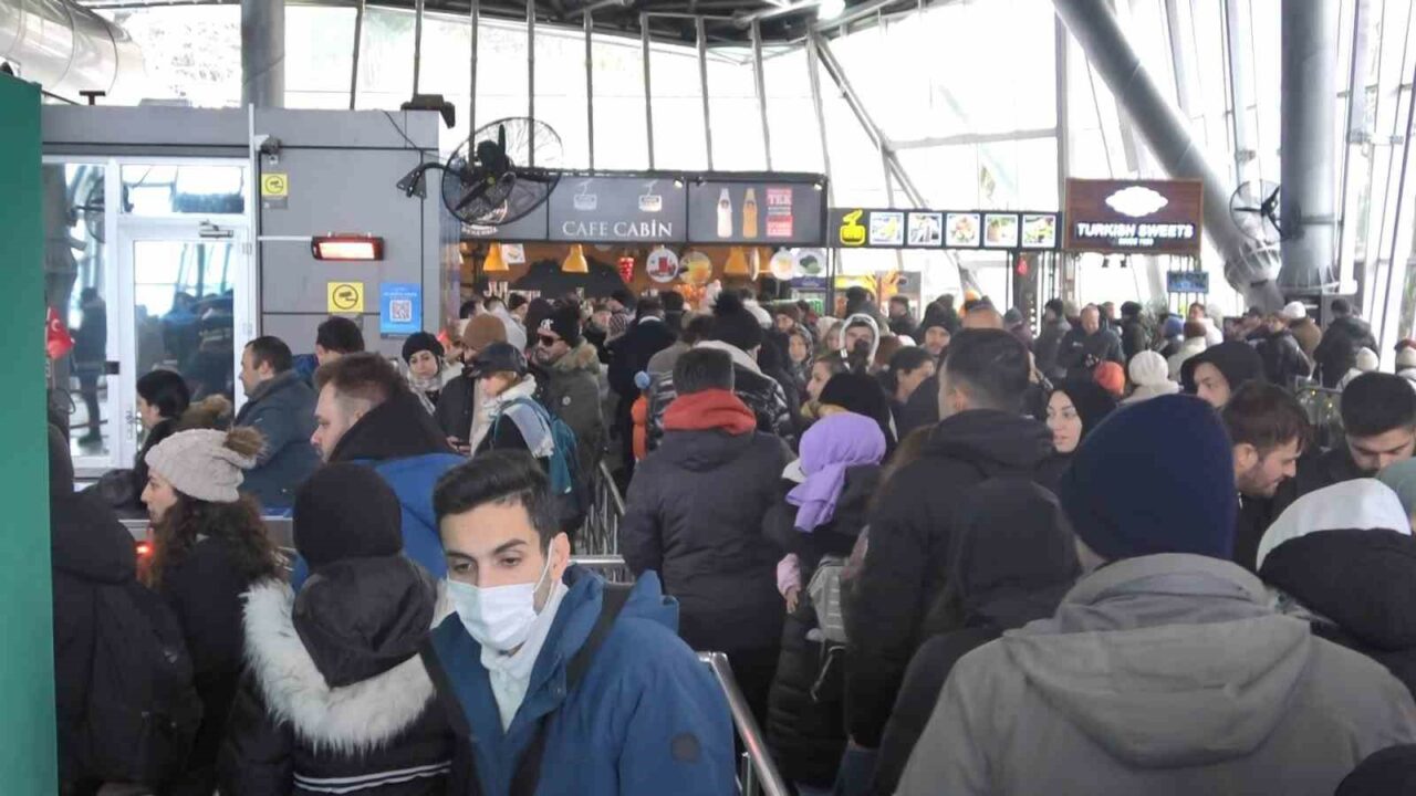 Kış turizminin gözde merkezlerinden Uludağ’a pazar günü ulaşmak imkansız hale geldi. Teleferikte sıra bekleyen vatandaşlar tarafından metrelerce kuyruk oluşurken araçlarıyla gitmek isteyenler Milli Parklar girişinde kilometrelerce sıra bekledi.