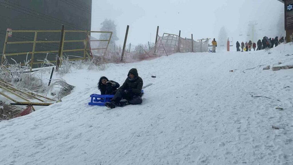 Pistlerdeki kar kalınlığı kayak yapmaya elverişli hale gelirken, günübirlikçiler kızak kiralayıp keyif yaptı. Telesiyejle büyük zirveye çıkmak isteyenler ise uzun kuyruklar oluşturdular.