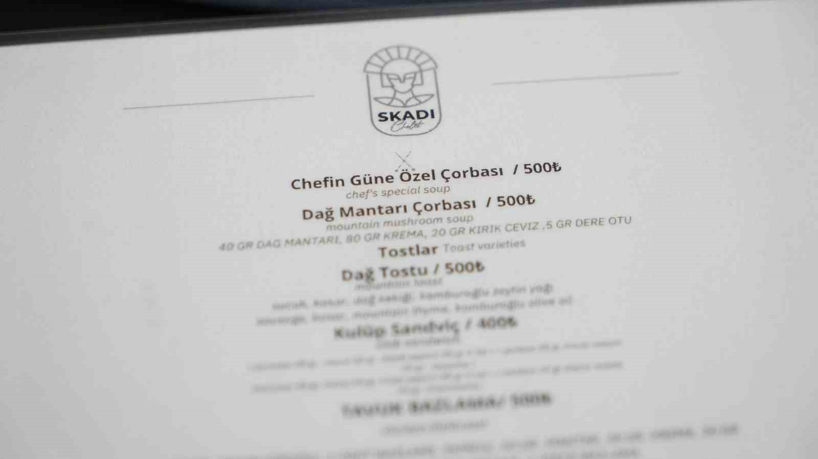 Türkiye’nin en önemli kış turizm merkezlerinden biri olan Uludağ’da lüks bir otelde 500 liralık fiyatıyla servis edilen dağ mantarı çorba ve menü fiyatlarıyla sosyal medyada gündem oldu. Uludağ’daki otelde dağ mantarı çorbasının 500 TL, ızgara et fiyatının 3 bin 500 TL ve pizzanın fiyatının da 1250 TL olduğu görüldü.