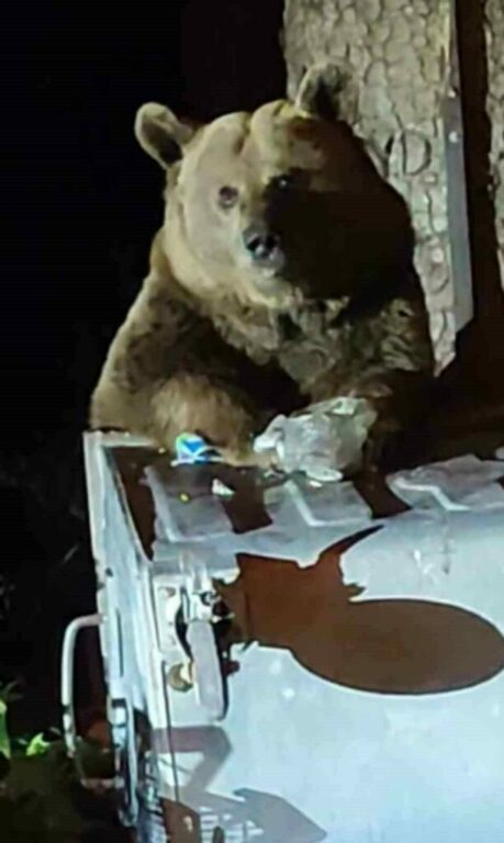 Türkiye’nin en önemli turizm merkezlerinden biri olan Uludağ’da aç kalan bir ayı, yerleşim alanlarına kadar indi. Çöp konteynerlerini karıştırarak yiyecek arayan ayı, vatandaşların cep telefonlarıyla kaydedildi.